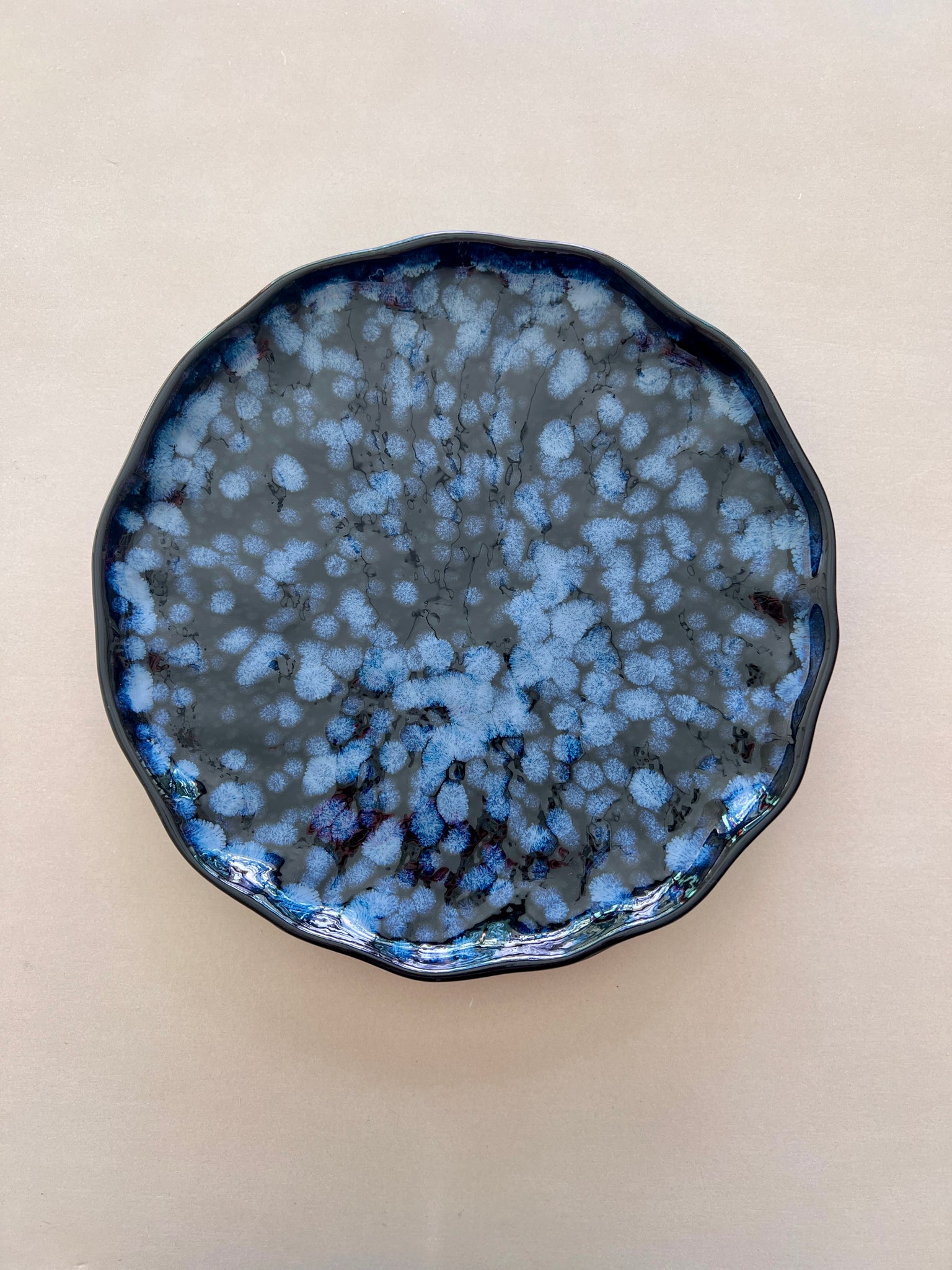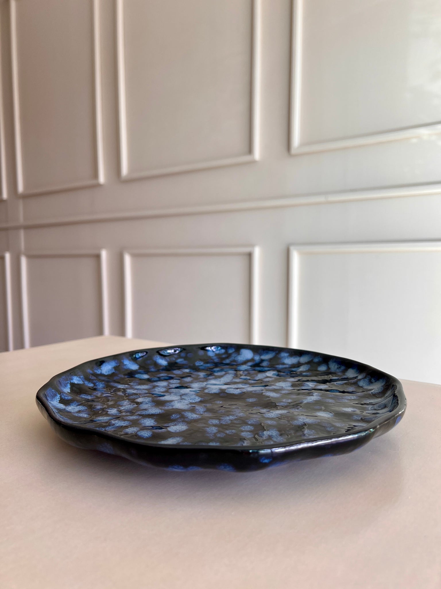 El Set Indigo destaca por su acabado en tonos azules profundos y efectos marmoleados que lo convierten en una pieza verdaderamente única. Su diseño ondulado y su brillo intenso aportan un toque moderno, artístico y sofisticado a cualquier mesa.