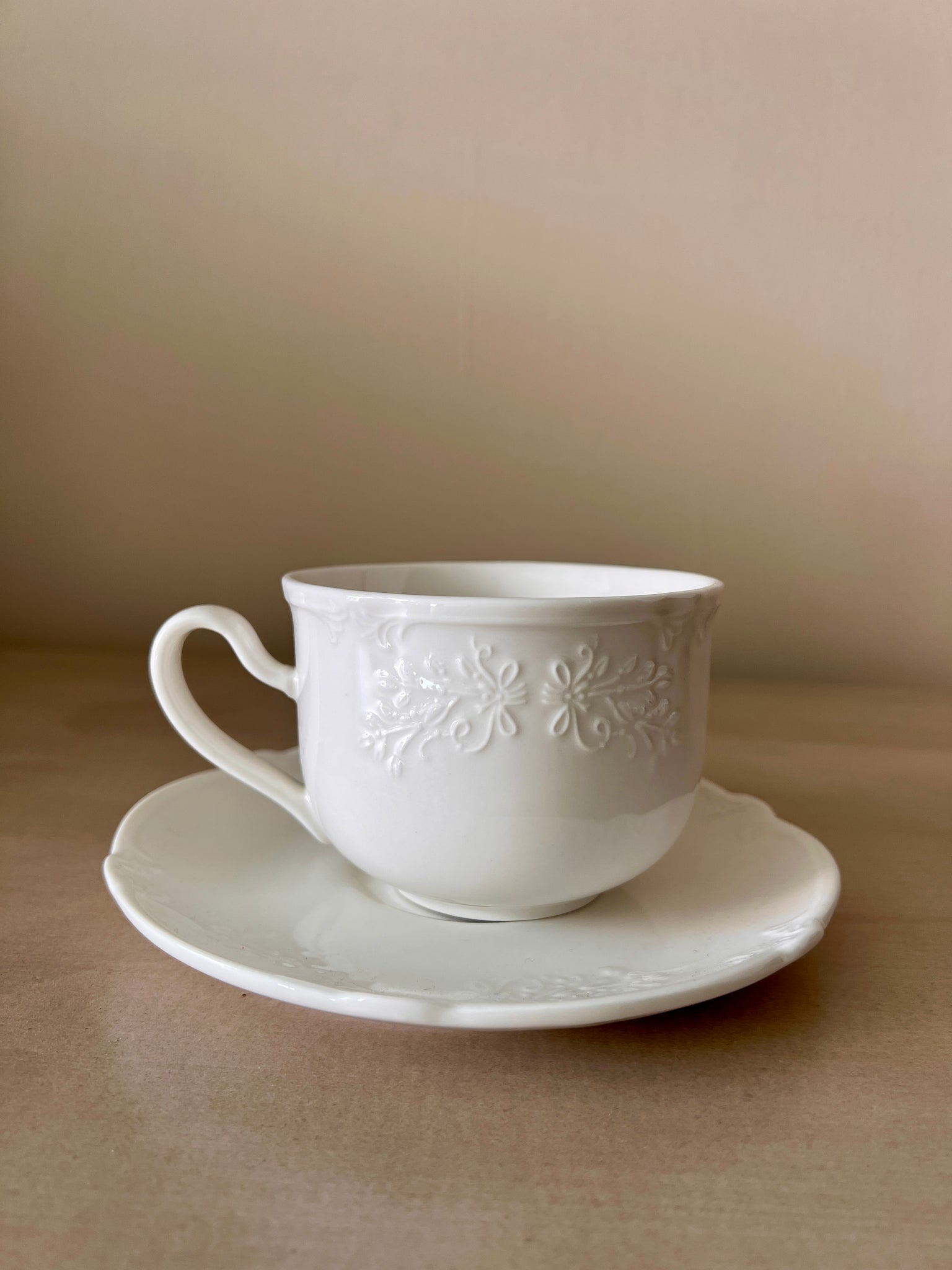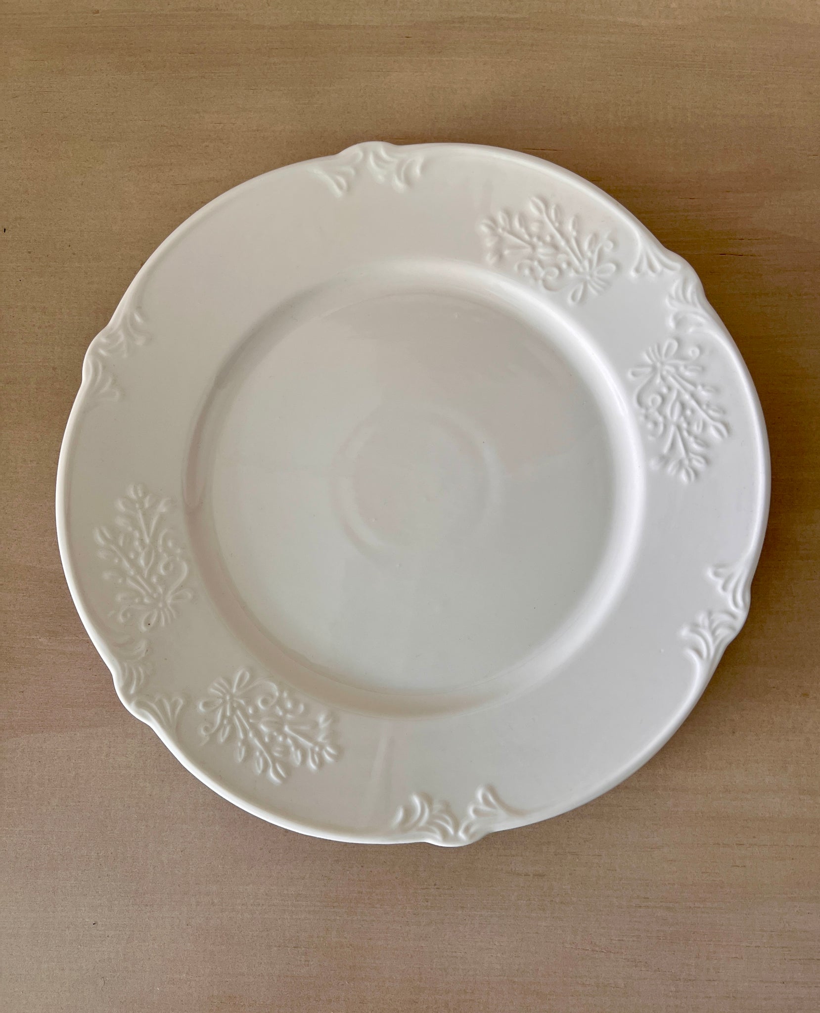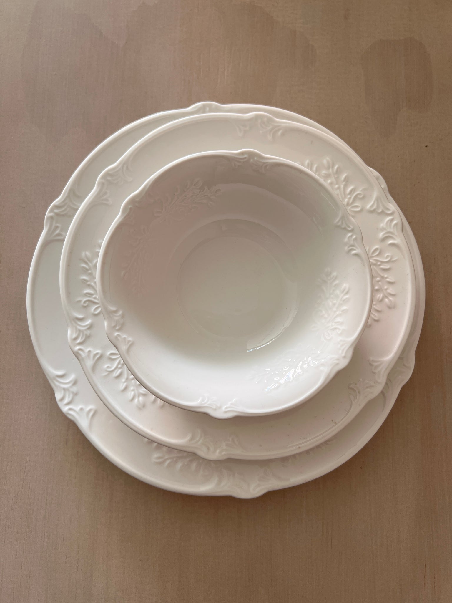 El Set Serama destaca por su diseño delicado y elegante, con relieves florales que aportan un toque clásico y atemporal a tu mesa. Su acabado en porcelana blanca lo convierte en una pieza versátil, ideal tanto para el día a día como para ocasiones especiales.