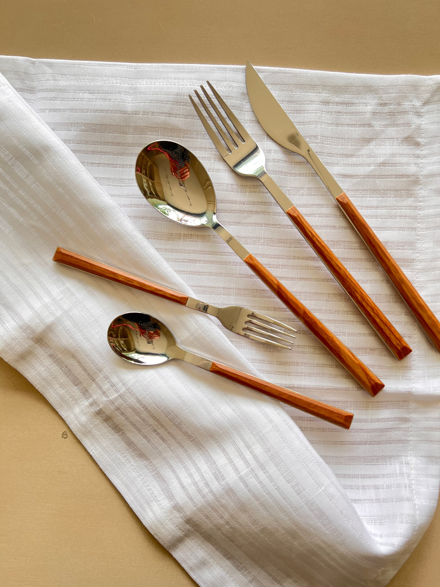 Hermoso set de cubiertos de 5 piezas, perfecto para cualquier ocasión y un complemento perfecto para tu mesa.